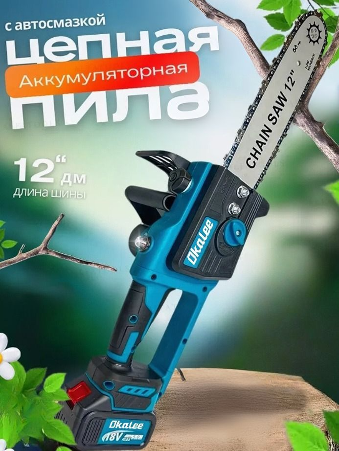 - Комплектация - Пила цепная; шина 12 дюймов; цепь 45 звеньев; 1 АКБ 21В 4Ач; зарядная станция; инструкция; кейс